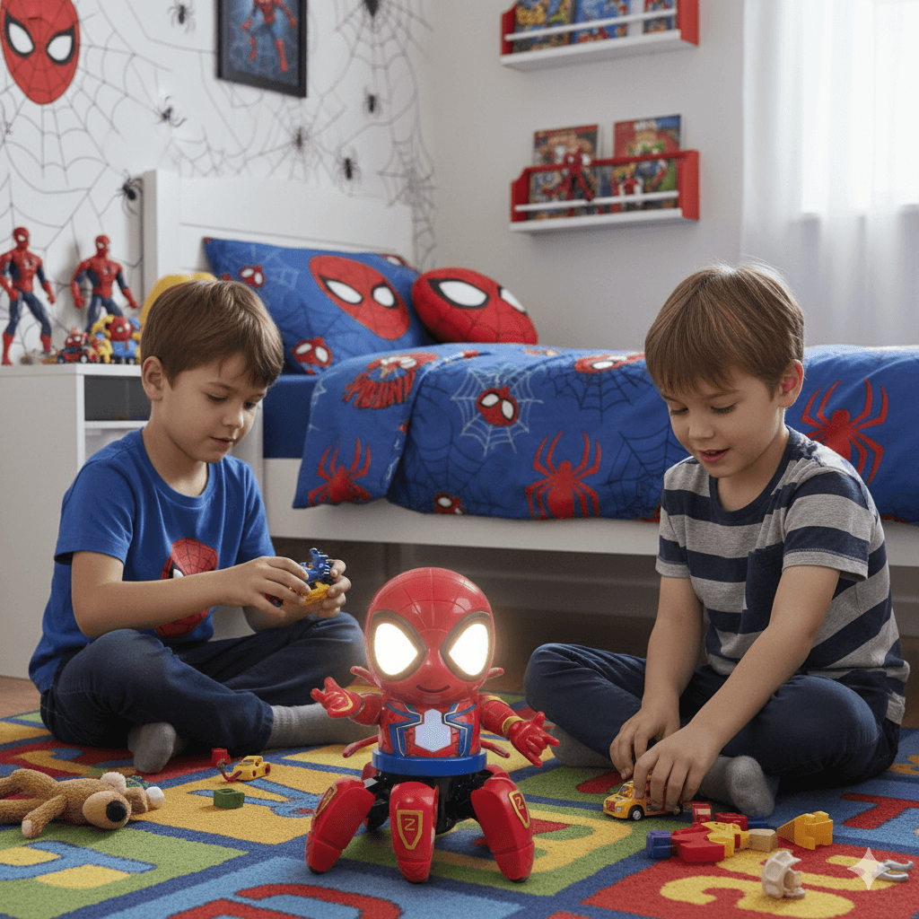 Spajdermen robot jako simpatično djuska, a u mraku, uz pomoć svojih svetlosnih efekata, stvara atmosferu u dečijoj sobi kao da je prava igraonica